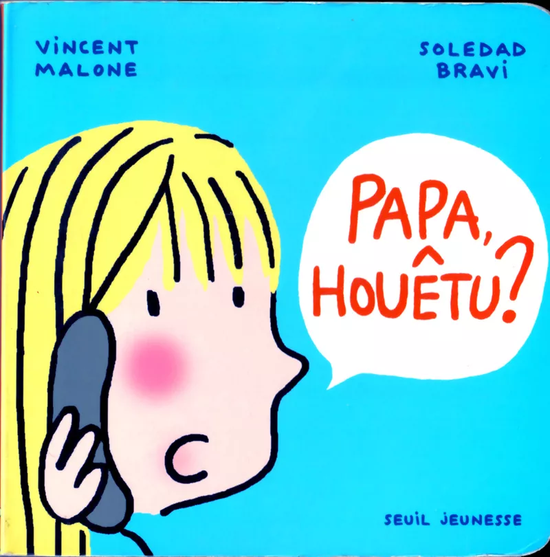 Sous prétexte d'un coup de fil et de la rituelle question : Papa, houêtu ? Des réponses sont illustrées au pied de la lettre comme : je suis charette, à côté de mes pompes, à Triffouillis-les-oies, etc.
