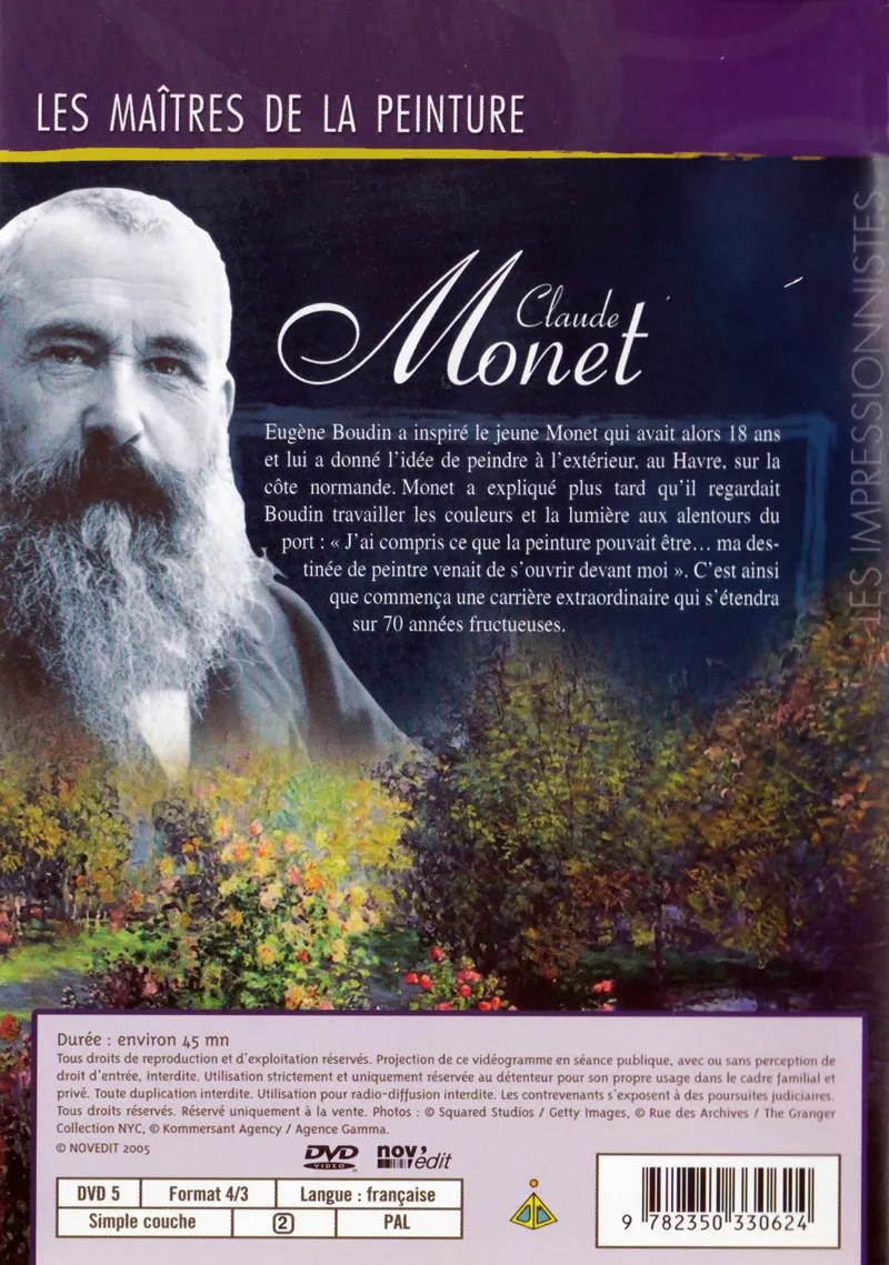 Eugène Boudin a inspiré le jeune Monet qui avait alors 18 ans et lui a donné l’idée de peindre à l’extérieur, au Havre, sur la côte normande. Monet a expliqué plus tard qu’il regardait Boudin travailler les couleurs et la lumière aux alentours du port : « J’ai compris ce que la peinture povait être… ma destinée de peintre venait de s’ouvrir devant moi ». C’est ainsi que commença une carrière extraordinaire qui s’étendra sur 70 années fructueuses.