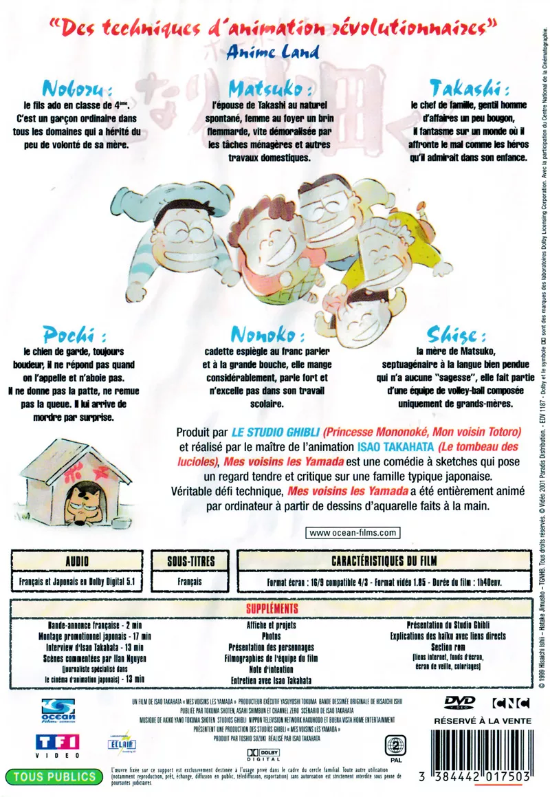 Mes voisins les Yamada est une comédie à sketches qui pose un regard tendre et critique sur une famille japonaise. Véritable défi technique, ce film a été entièrement animé par ordinateur à partir de dessins d’aquarelle faits à la main.