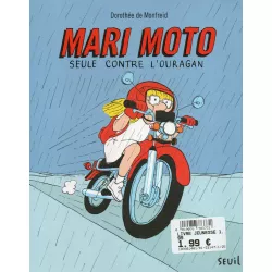 Mari rêve d'exploits et d'aventures. Mais avec des parents aussi protecteurs que les siens, pas question d'aller plus loin que le bout du jardin. Pourtant, le jour où un ouragan ravage tout sur son passage, Mari est la seule à pouvoir sauver sa famille. Et pour aller chercher les secours, elle a une super idée : emprunter la vieille moto de sa grand-mère. Bon, d'accord, Mari n'a que 10 ans... Mais ses pieds atteignent bien les pédales, non ? Son casque vissé sur la tête, Mari part sur les petites routes de campagne. Parviendra-t-elle à gagner la ville avant de manquer d'essence ?
